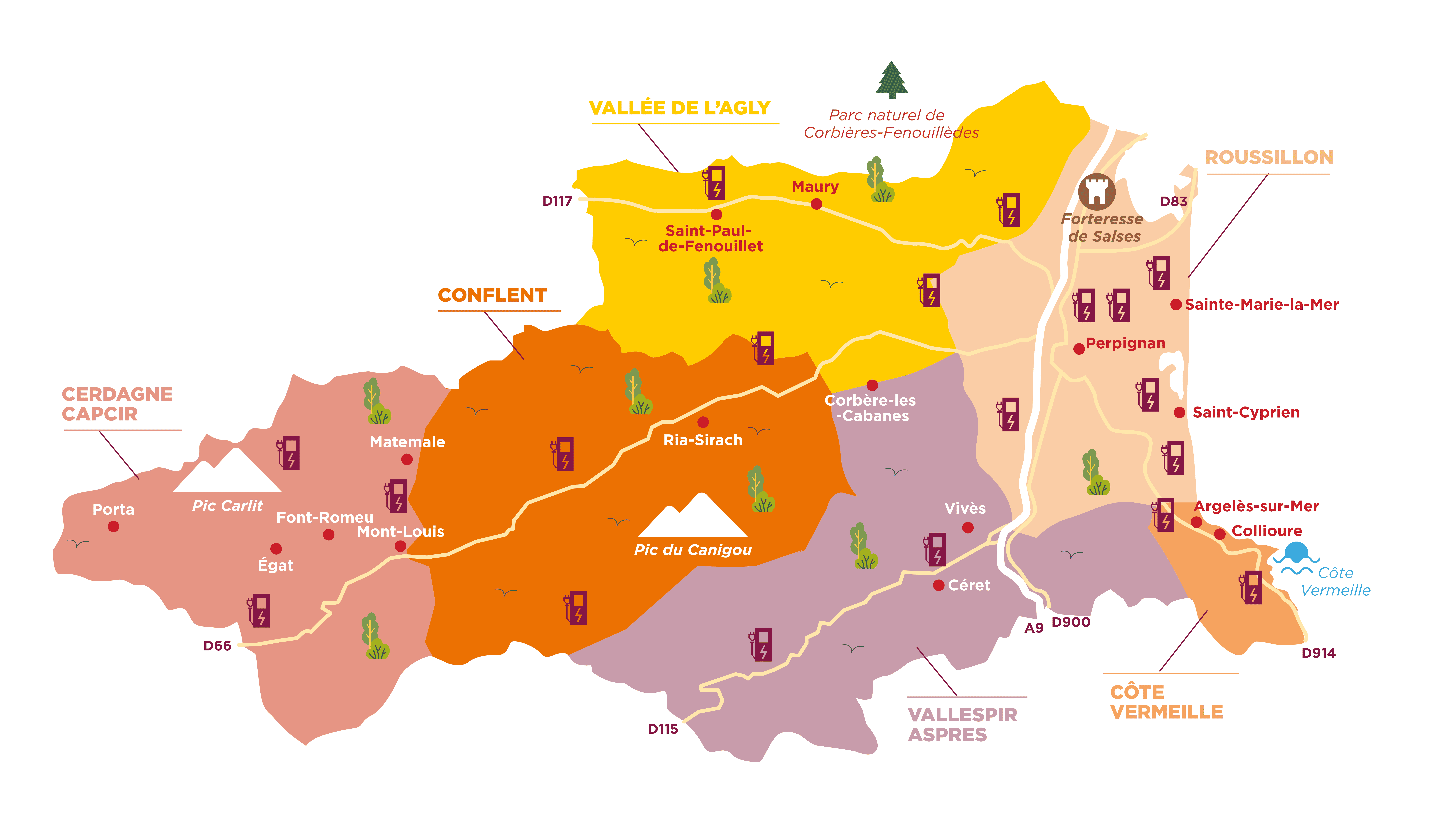 AQUÍ est un réseau de bornes de recharge pour véhicules électriques et hybrides rechargeables dans les Pyrénées-Orientales.